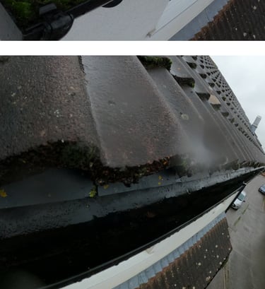 A professional gutter clearing service designed to keep rainwater flowing freely, carried out safely and thoroughly, with routine checks for regular customers to ensure gutters and downpipes are clear.